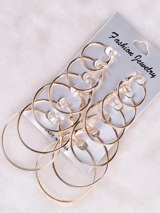 12Pcs/Set Hoop Earrings Set Stainless Steel Big and Small Different Size Circle Exaggerated C-Shaped Decor Gold Hoops Silver round Hoops Earrings Classic Jewelry Gift Set for Women & Men & Girls Daily Earrings